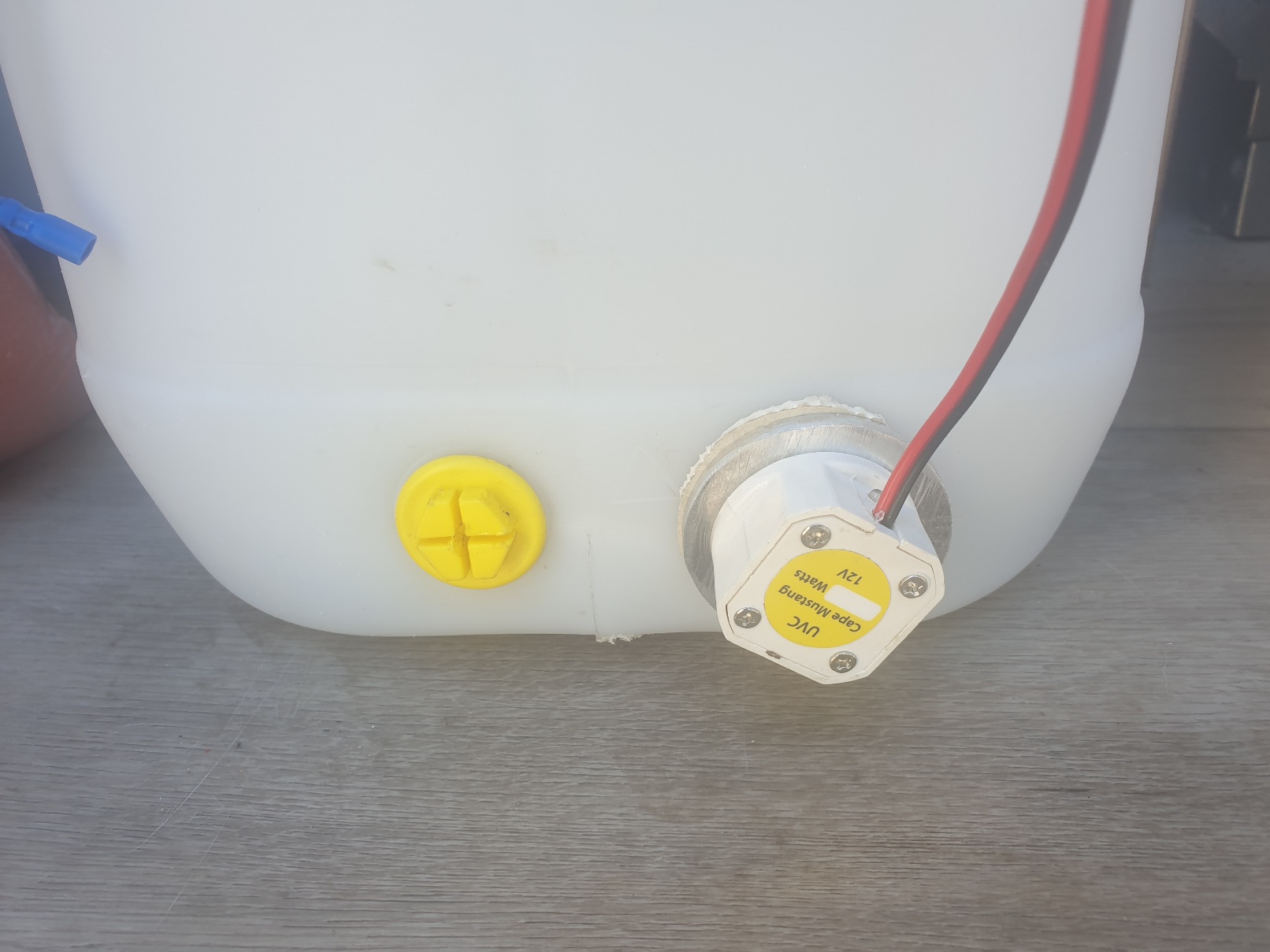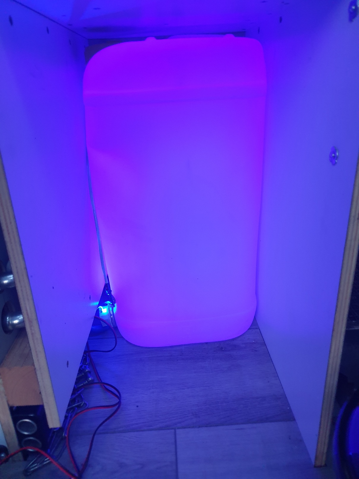 Der Wassertank sollte das UV List ausreichend abschirmen. Es ist unsichtbar, deswegen abschalten, bevor du z.B. in den Tank schaust. Wozu hast du 2 Zeit Relais verwendet. Dies sind Intervall Relais, eines sollte reichen.