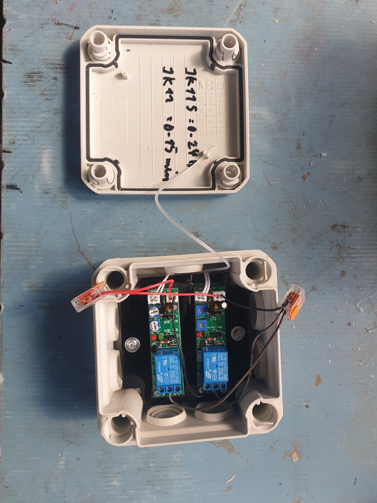 So ist nun Fertig Eingebaut, hab ne Verteilerdose als gehäuse genommen für die 2 Zeitrelais.