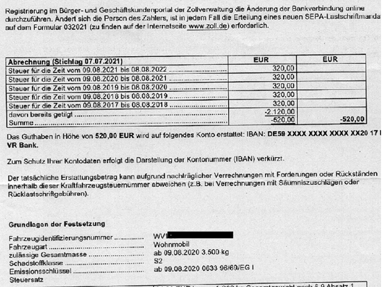 Dann wird euch die KFZ Steuer 4 Jahre rückwirkend korrigiert, das heißt ihr bekommt ca. 4 mal 160.-€ zurück. Alles andere ist verjährt.