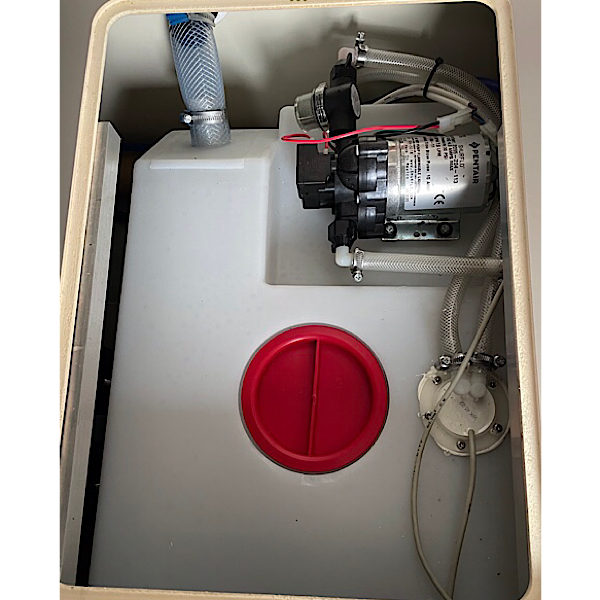 Ein kurzes Stück Schlauch (lebensmittelecht) und zwei Schlauchklemmen Nim das von mir empfohlene Druckgefäß "Fiamma A20" dies lässt sich lageunabhängig einbauen, da es einen Druck Balon enthält.
