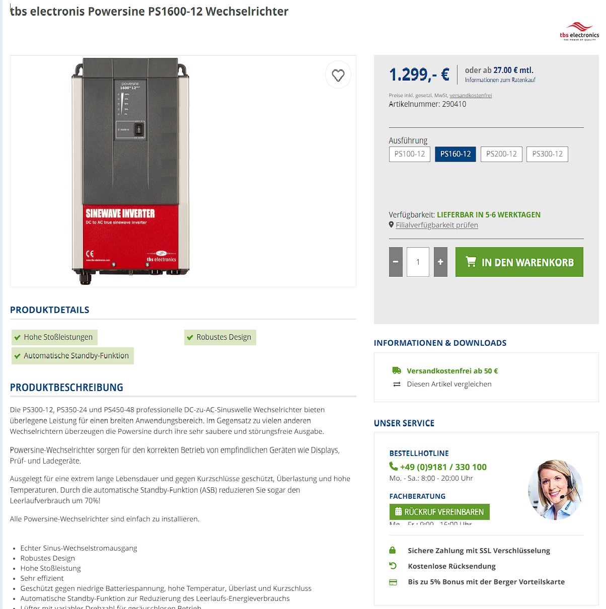 Inverter 1600Watt Version PS1600-12 von TBS, baugleich mit Büttner ICC16000. Verkauft
