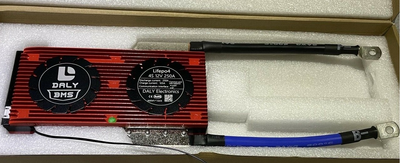 Als BMS habe ich mir 2 Stück von den Daly 250 Ampere BMS dazu gekauft.