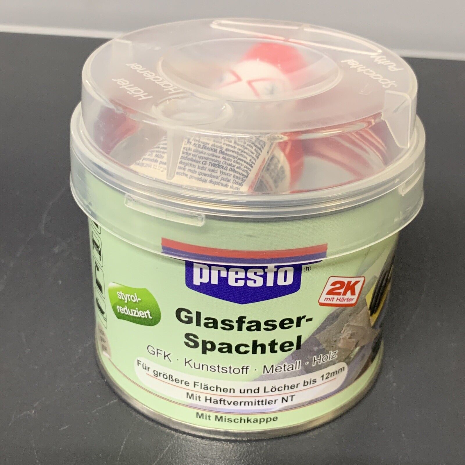Mit 2 Komponenten GFA Spachtel (Baumarkt oder ebay). Muss danach gut abgeschliffen und lackiert werden.
