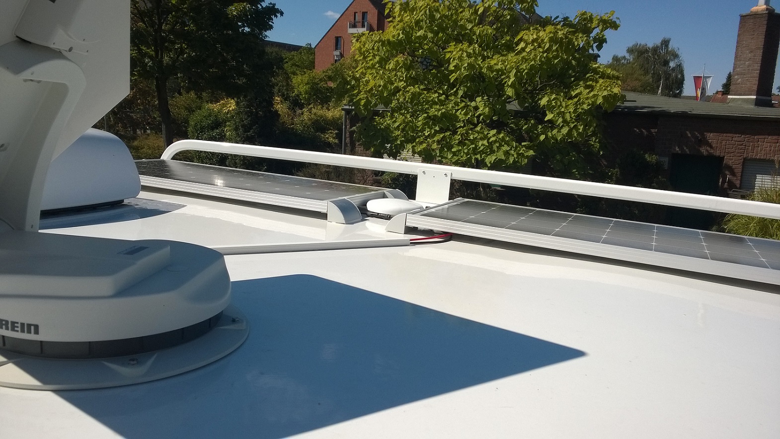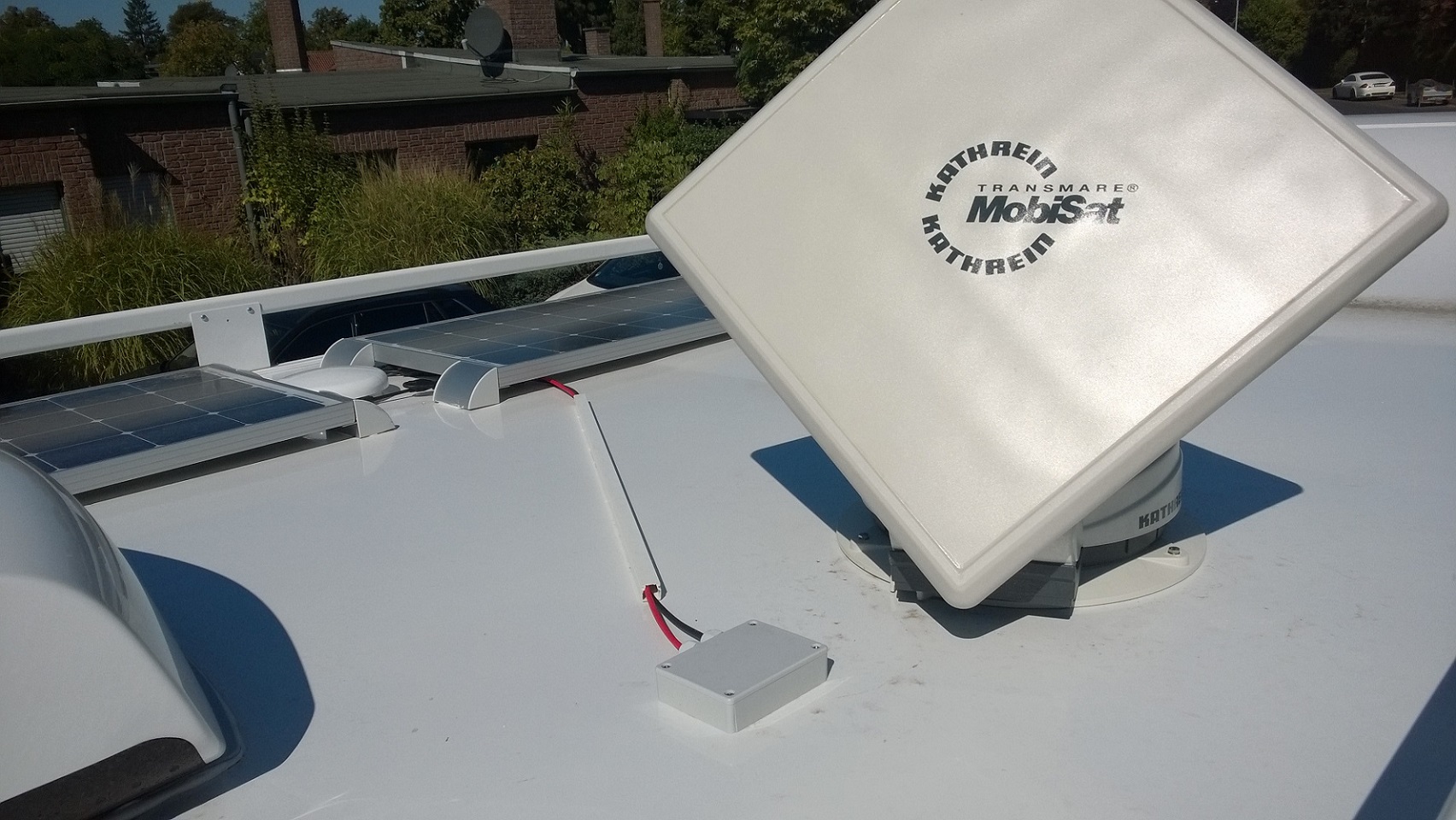 Die Automatische Kathrein Satellitenanlage auf dem Dach.
