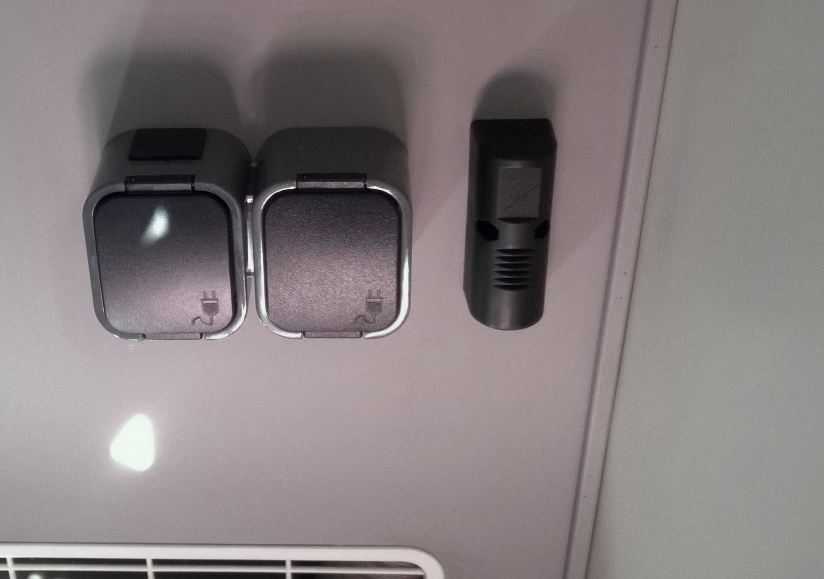 In die Heckgarage rechts unten noch eine 230 Volt Doppelsteckdose und eine 12 Volt Steckdose, so kann man mit dem Solarstrom e-Bikes etc. laden.