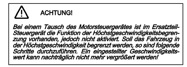Wehe dem, der dort 30 Km/h eingegeben hat. Um wieder schneller als 30 Km/h fahren zu können, muss ein neues Steuergerät her.