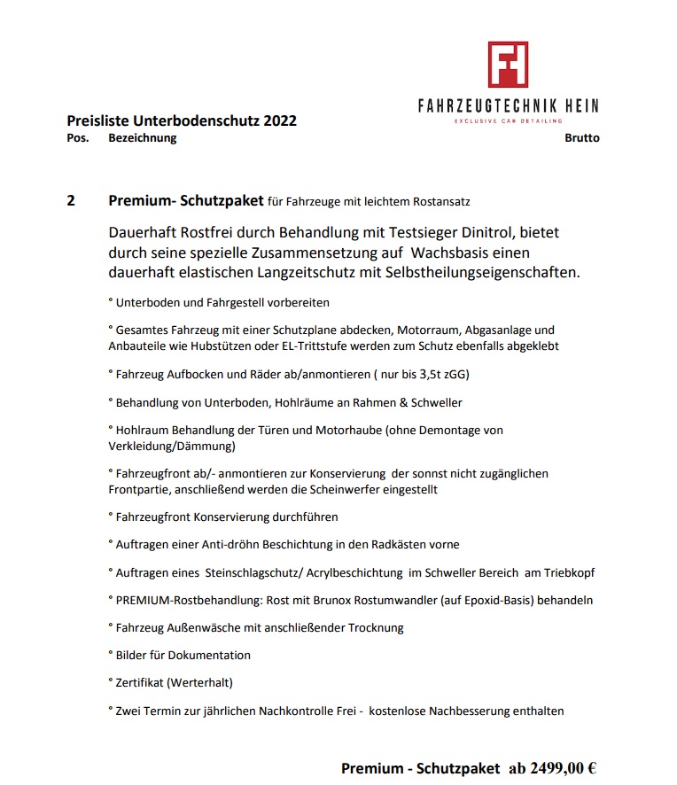 Ich habe für die Versiegelung - Unterboden und Hohlraum - € 700,00 bezahlt, ist zwar nicht so schön und akkurat wie bei Frank, tut aber auch seinen Zweck.