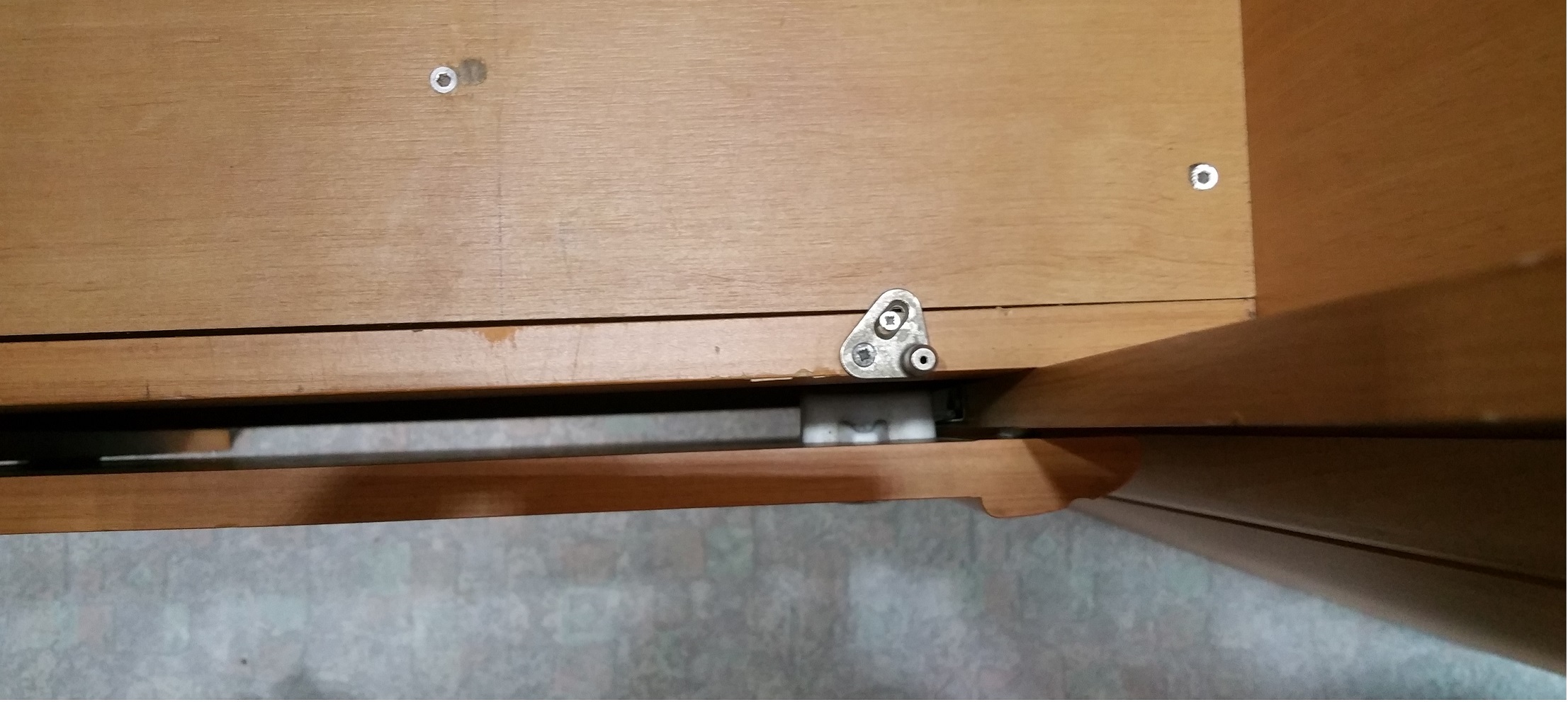 Alternativ könnte das Brett unten unter der Türe vom Schrank von innen befestigt werden, so das unten hinter der Türe ein , von außen, unsichtbarer Spalt von ca. 16mm entsteht.